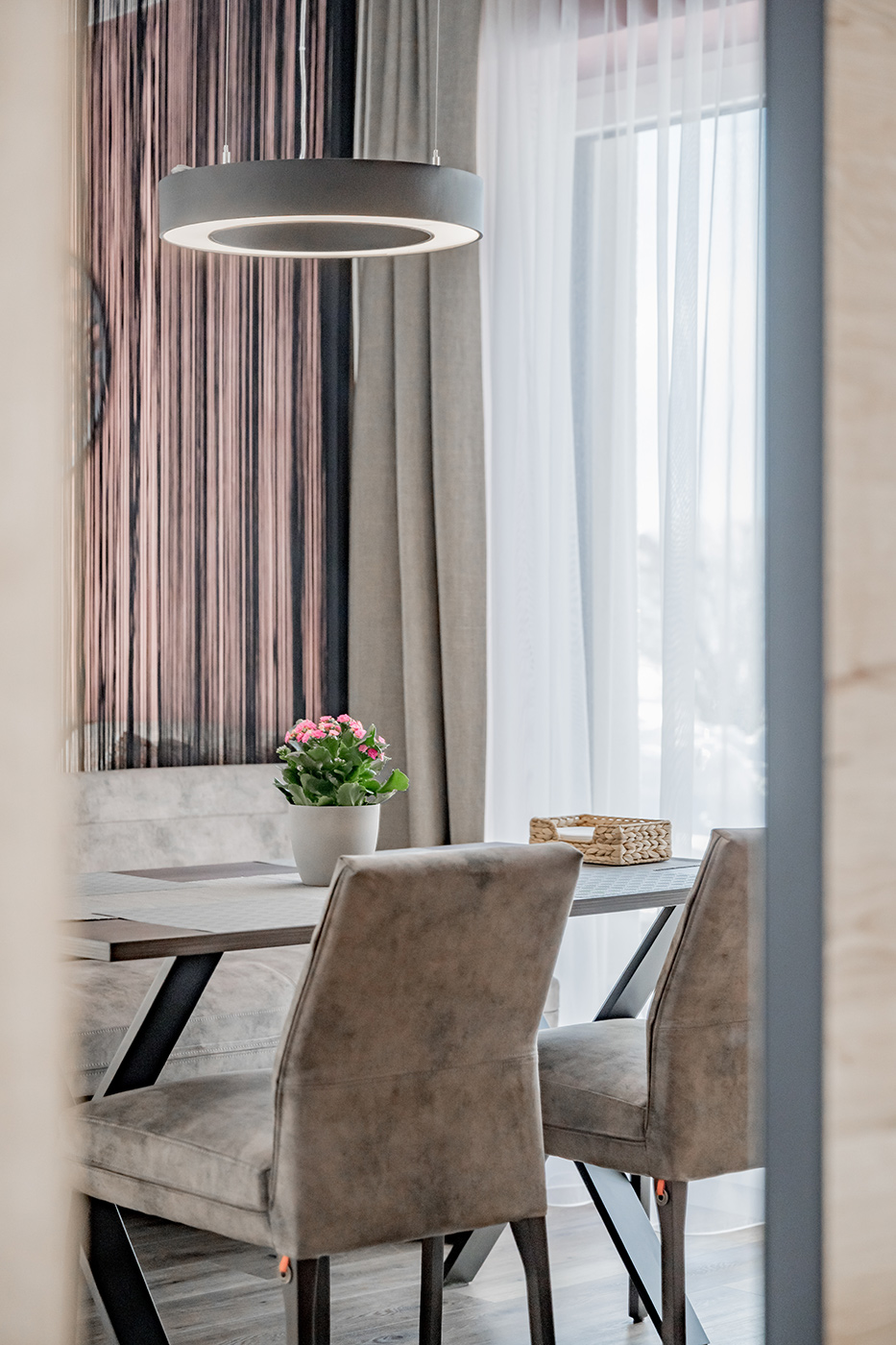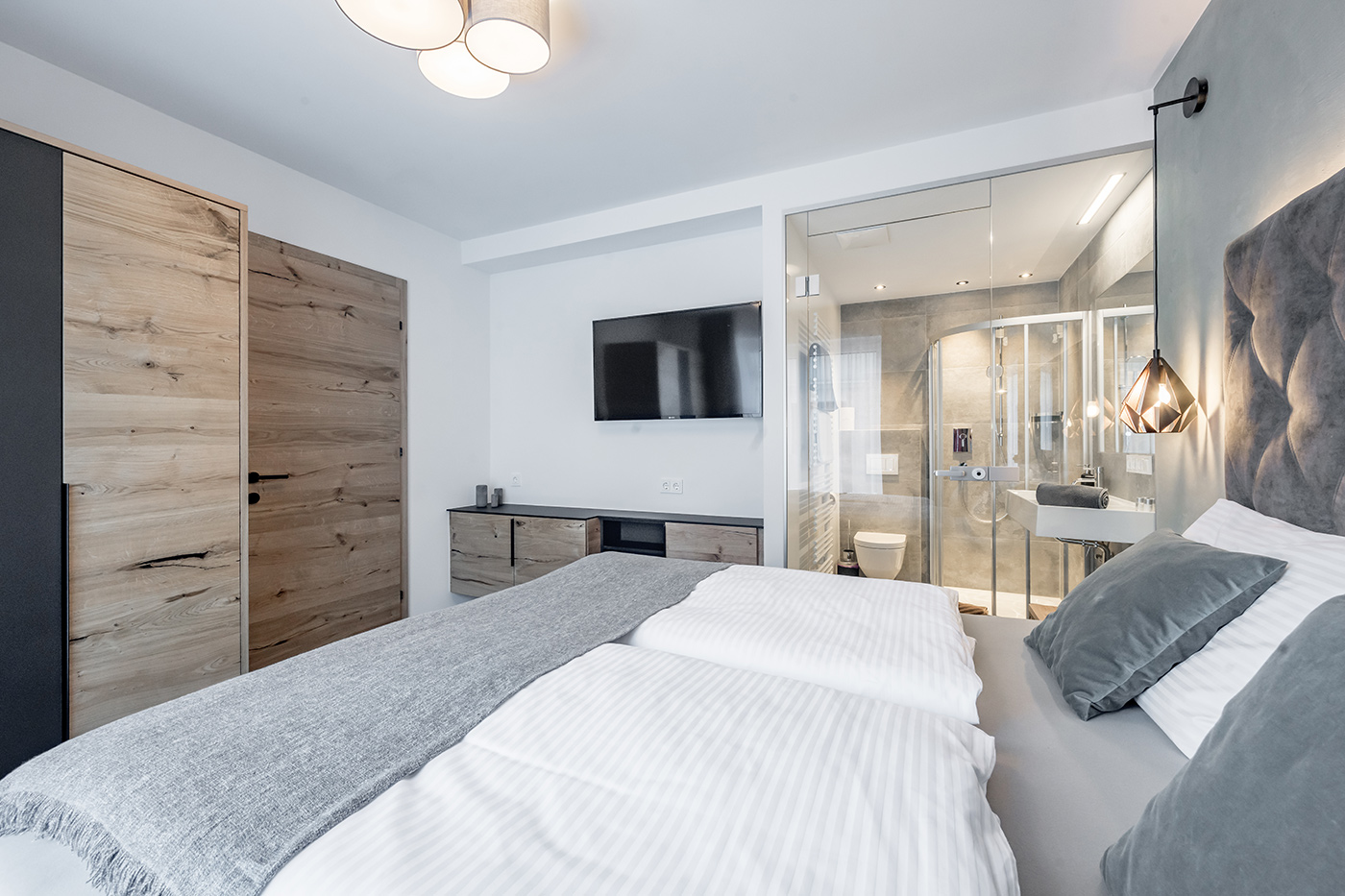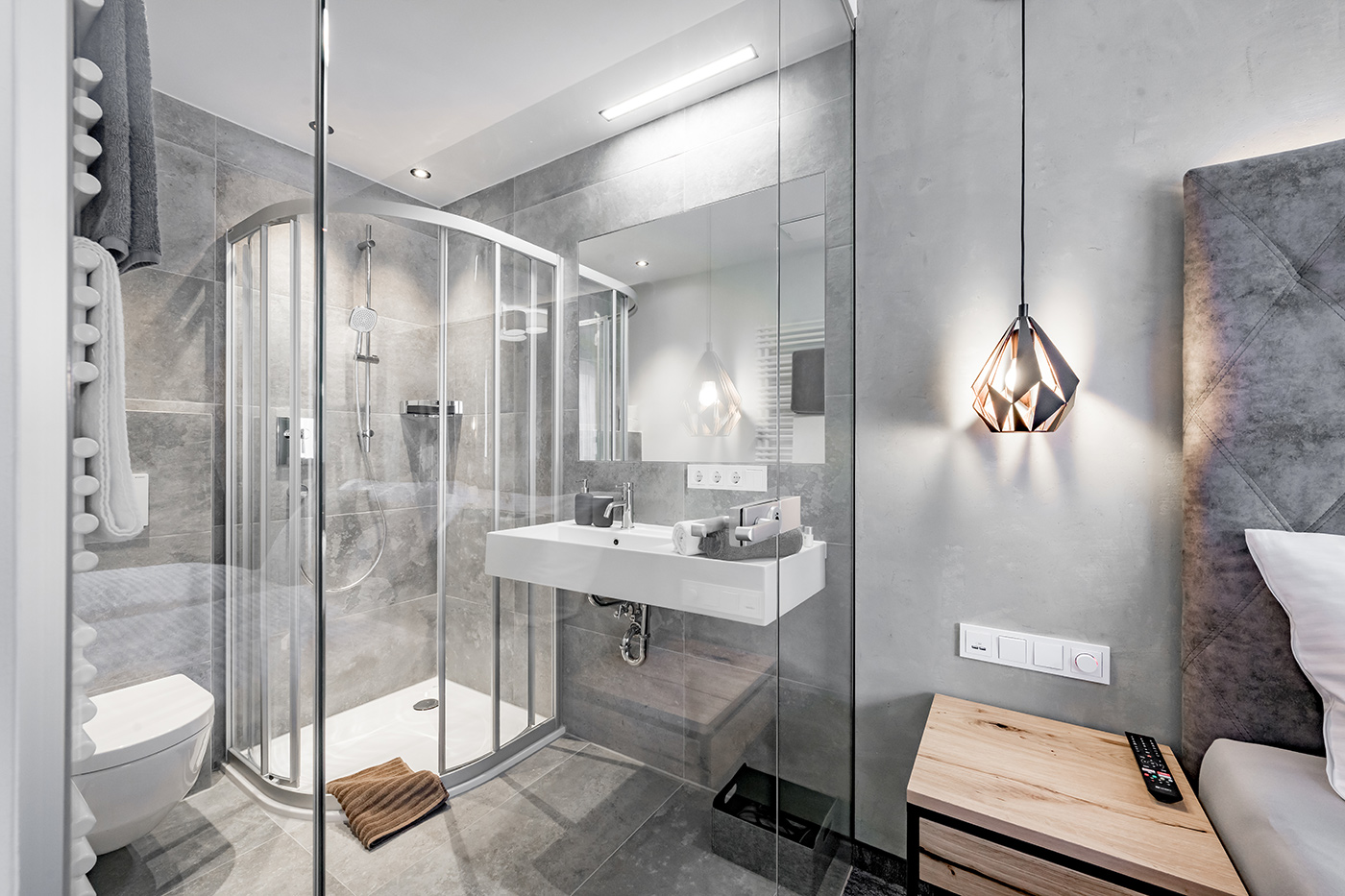 In jedem Apartment empfangen dich Räume mit klarer Linienführung. Mit Ästhetik, die Modernität mit alpiner Wärme verbindet. In der Küche findest du einen SodaStream um das Bergwasser zum Sprudeln zu bringen, eine Nespresso-Maschine für den perfekten Espresso, Toaster, Eierkocher und vieles mehr. Das Badezimmer wird mit begehbarer Dusche mit Infrarotfunktion (Lodge 1, 2 und 3) und extra flauschigen Handtüchern zum Wohlfühlort. Im Schlafzimmer dimmt sich die indirekte Beleuchtung, während du dich in Boxspringbetten sinken lässt – den Härtegrad kannst du individuell einstellen. Die Matratzen sind so bequem, dass du morgens am liebsten nochmal Snooze drücken möchtest. Wenn da nur nicht die 250 Dreitausender wären, hunderte Bike-Kilometer, unzählige Wanderpfade und sechs Skigebiete, die du mit nur einem Skipass erobern kannst...