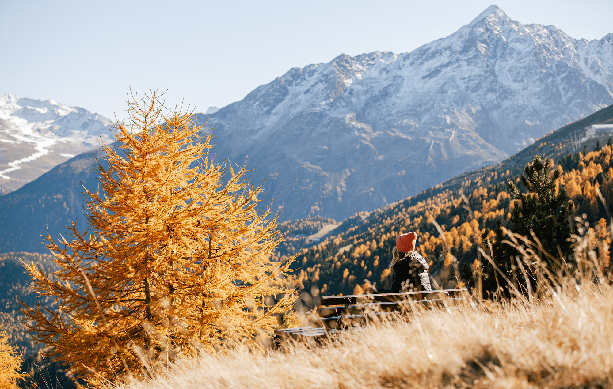Der Herbst im Ötztal ist eine Saison für Genießer. Mitten im Farbenspiel der herbstlichen Wälder kannst du dank des Gletscherskigebiets in Sölden sowohl Wanderschuhe als auch Skier anziehen. Der Rettenbach- & Tiefenbachgletscher ermöglichen es dir, bereits im Herbst über schneebedeckte Pisten zu gleiten, die sich von 2.675 bis 3.250 Meter Höhe erstrecken.
